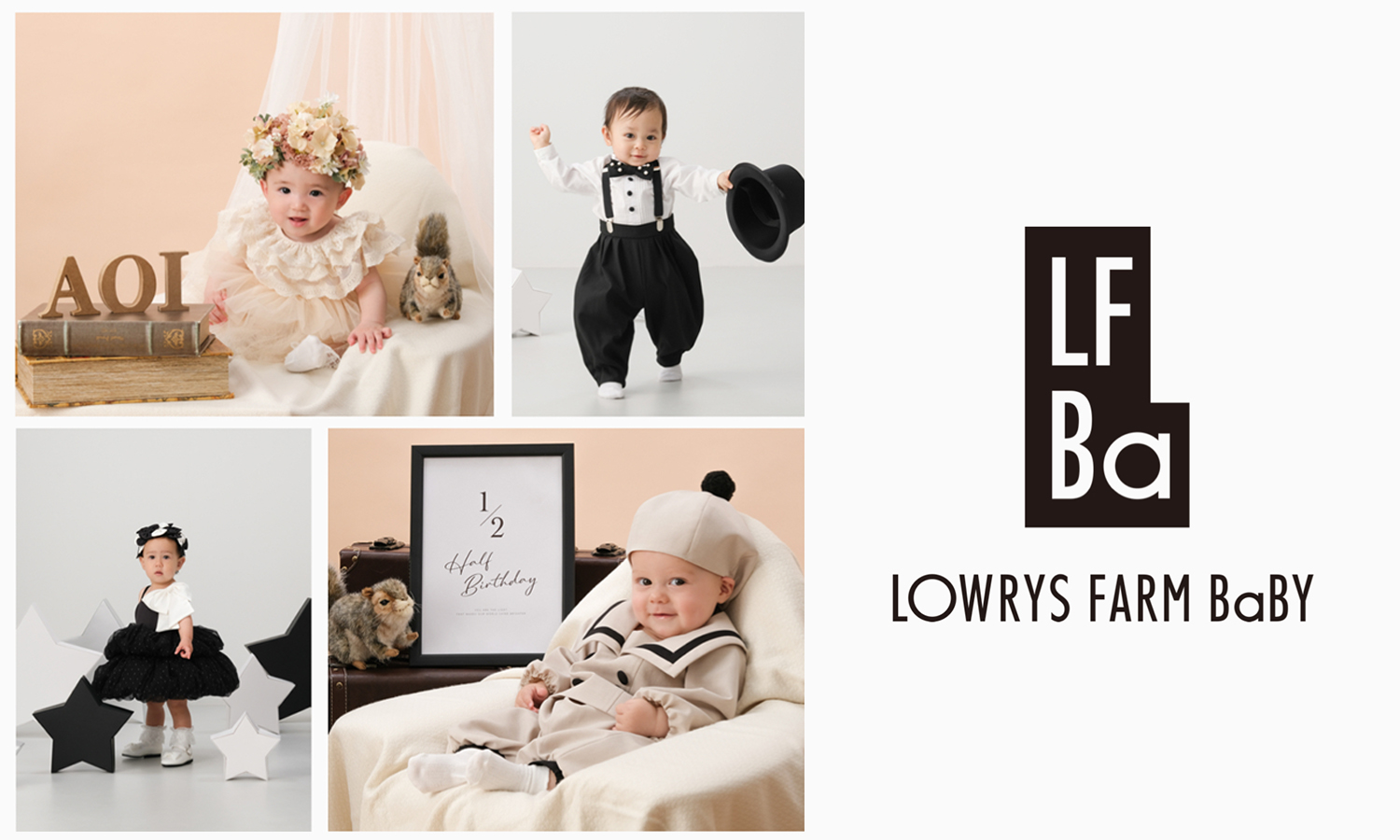 LOWRYS FARMの“カワイイ”を通して、子どもとご家族の皆さまに幸せを感じていただきたいという想いから、ベビー衣装監修を手がける運びとなりました。誕生してわずか半年、1年の瞬間にしかない“カワイイ”フォルムと表情を最大限引き出すことができるおめかしスタイルを提案いたします。