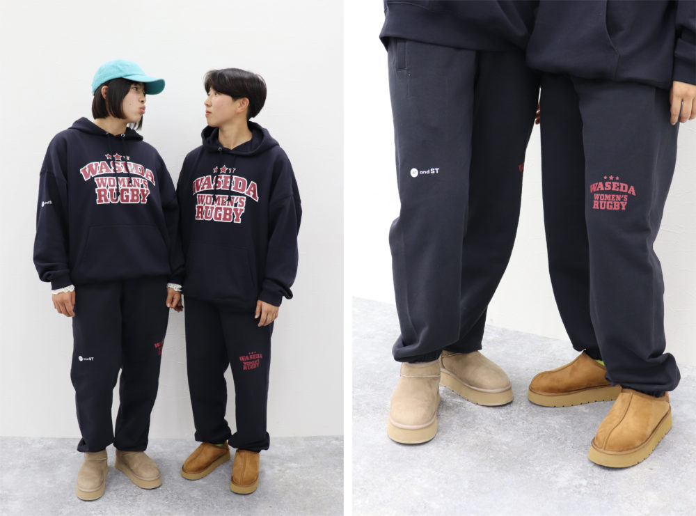 これまでのノウハウを活かし、開発過程では部員の皆さまの意見を交えながら、タウンユースに最適なカジュアルウェアを開発。プライベートでも身に着けるだけで気分があがり、チームメイト同士で精神的に強いつながりを感じられる様な仲間意識を高めるカジュアルウェアを目指しました。新設され間もない部活動であるという点からも、周囲からの憧れもえられるようなウェアになるよう工夫を凝らしたセットアップです。